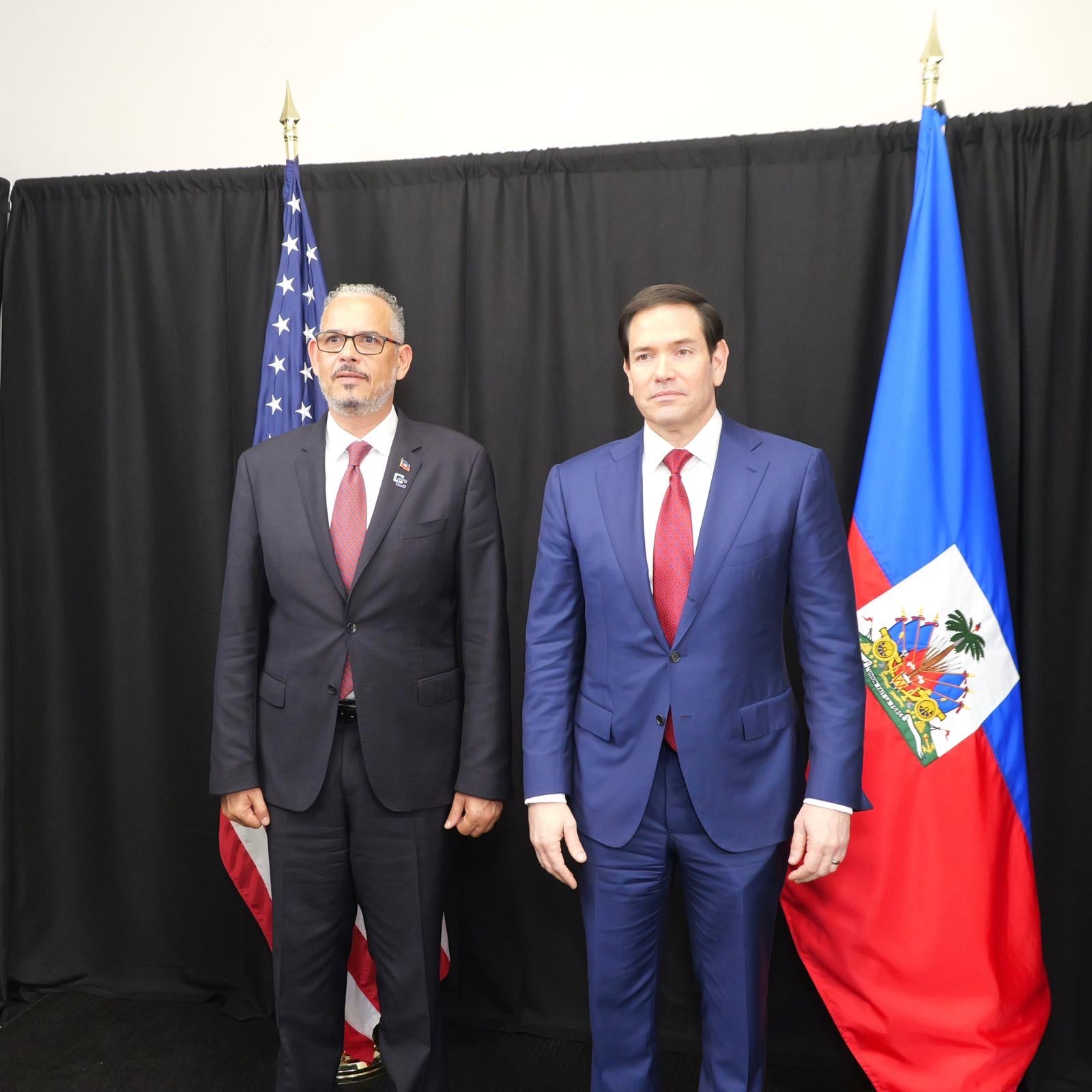 Le premier ministre haïtien, Alix Didier Fils-Aimé et le Secrétaire d’État américain, Marco Rubio•©️photo : Primature