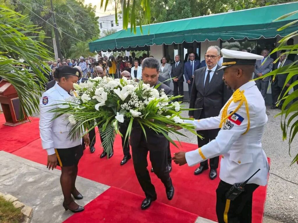Port-au-Prince, January 12, 2026.- On the occasion of the 16th anniversary of the 2010 earthquake, the Transitional Presidential Council (CPT) and the Haitian government paid tribute to more than 280,000 victims at a ceremony held at the National Palace in Port-au-Prince. In the presence of the Prime Minister, members of the government, the Director General of the National Police and the Commander-in-Chief of the Armed Forces of Haiti, the Councillor President Laurent Saint-Cyr proceeded to deposit a shem of flowers. In his speech, he recalled: « Ayiti se wozo, li foldye men li pa p kase. 2010 pa dwe sélman kite doulè, men nou dwe aprann leson yo. »