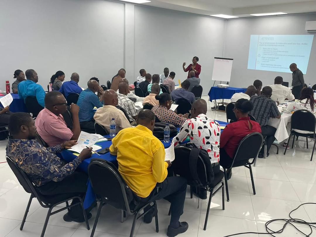 Port-au-Prince, le 21 septembre 2025.- Le Ministère de l’Éducation Nationale et de la Formation Professionnelle (MENFP) a tenu du 15 au 19 septembre, deux sessions de formation destinées aux directeurs et directrices d’écoles publiques dans les départements du Sud et de la Grand-Anse. Au total, 214 responsables scolaires — 126 aux Cayes et 88 à Jérémie — ont été formés autour des outils « Livre unique » et « Teach Primary ».