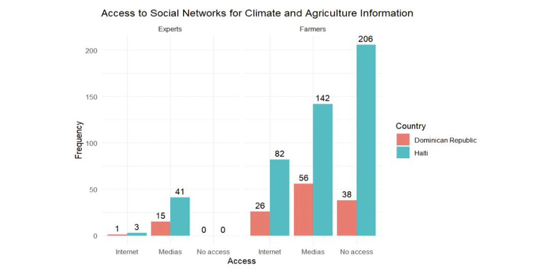 L’étude a montré que les agriculteurs haïtiens utilisent peu les médias et Internet pour s’informer sur le climat. Ceci est principalement dû à la pauvreté et au manque d’électricité, qui rend difficile l’acquisition et l’utilisation de ces technologies. Même lorsque certains ont accès à la radio, à la télévision ou à Internet, ils se heurtent à un autre problème : les informations scientifiques sur le climat sont souvent diffusées en français ou en anglais, langues que beaucoup d’agriculteurs ne comprennent pas, notamment en raison d’un faible niveau d’instruction. Ce constat rejoint les travaux de Tume et al. (2019) et de Balasha et al. (2023), qui soulignent la difficulté pour les ménages agricoles d’utiliser les technologies et de comprendre les informations diffusées, souvent en langues étrangères. C’est dans ce contexte que Kolawole et al. (2014), Hosen et al. (2020), Balehegn et al. (2019) et Balasha et al. (2023) s’accordent à dire que les prévisions météorologiques et climatiques traditionnelles restent très utiles aux ménages agricoles des pays à faible revenu qui n’ont pas accès à un système moderne de prévision météorologique. En revanche, les ménages agricoles dominicains utilisent la télévision, la radio et d’autres plateformes pour s’informer sur le temps. Ils y ont plus facilement accès, car les informations météorologiques sont souvent diffusées en espagnol. De plus, la République dominicaine étant un pays émergent, les ménages agricoles y sont mieux formés (Duvil et al. 2024). Ils ont également accès à l’électricité, ce qui leur permet d’acquérir et d’utiliser des technologies sans difficulté.