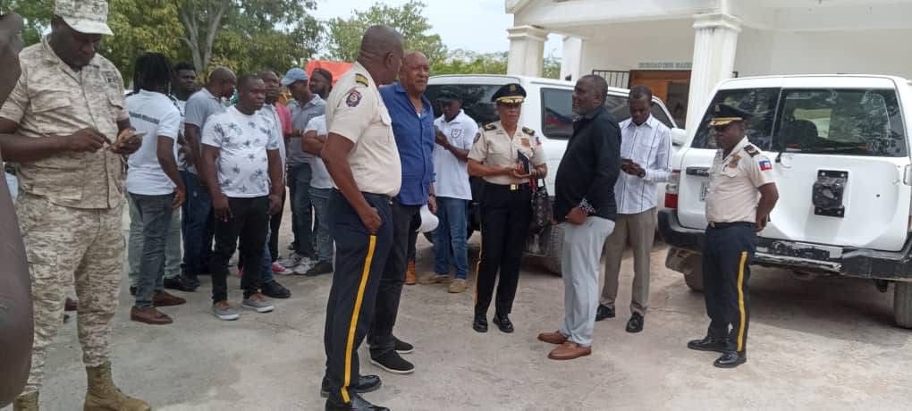 Anse-à-Pitres, August 27, 2025.- A security meeting, held on Tuesday, 26 August, in Anse-à-Pitres, brought together local authorities and representatives of civil society, including Mayor Harry Bruno, the Departmental Director of the South-East National Police, Divisional Commissioner Magalie Belneau, and Departmental Delegate Jude Pierre Michel Lafontant. Called after rumours of an attempt to kidnap circulating on social networks, the meeting confirmed that the information was false and fabricated, according to members of the community.
