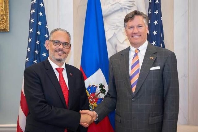 Washington, le 14 juillet 2025.- En pleine intensification des efforts pour rétablir la paix en Haïti, le Premier ministre Alix Didier Fils-Aimé s’est entretenu, ce lundi, avec le secrétaire d’État adjoint américain ,Christopher Landau, à Washington. Cette rencontre stratégique a porté sur les défis sécuritaires actuels, la restauration de l’ordre constitutionnel et l’engagement mutuel pour renforcer la stabilité politique en Haïti. Les États-Unis ont réaffirmé leur soutien à la Mission Multinationale de Soutien à la Sécurité (MSS), tout en appelant à un meilleur partage des responsabilités internationales.