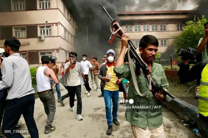 Selon l’AFP, un groupe de protestataires a même saisi des armes appartenant aux policiers postés autour du complexe gouvernemental de Singha Durbar. La maison du Premier ministre n’a pas échappé à la fureur populaire : elle a été incendiée dans la matinée, ce qui a forcé le premier ministre KP Sharma Oli a annoncé sa démission pour « faciliter une sortie politique à la crise ».
