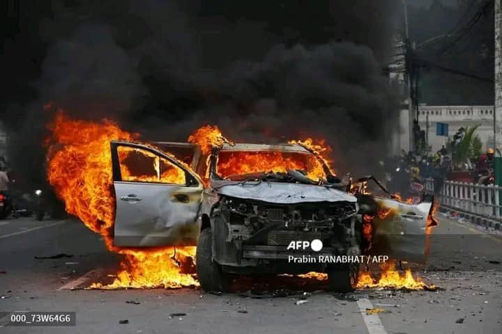 Selon l’AFP, un groupe de protestataires a même saisi des armes appartenant aux policiers postés autour du complexe gouvernemental de Singha Durbar. La maison du Premier ministre n’a pas échappé à la fureur populaire : elle a été incendiée dans la matinée, ce qui a forcé le premier ministre KP Sharma Oli a annoncé sa démission pour « faciliter une sortie politique à la crise ».