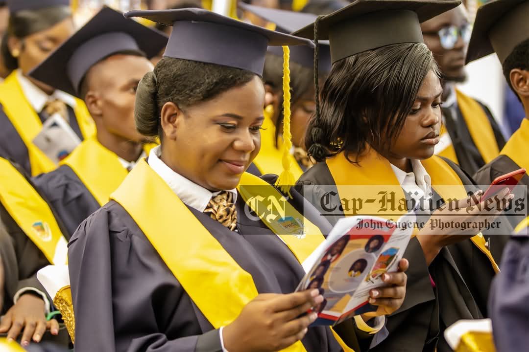 Cap-Haïtien, le 28 juillet 2025.- Malgré le climat d’insécurité généralisée qui gangrène Haïti, l’Université Publique du Nord au Cap-Haïtien (UPNCH) a tenu, le dimanche 27 juillet, une impressionnante cérémonie de collation des grades. Deux promotions, 2019-2023 et 2020-2024, totalisant 250 nouveaux diplômés, ont été honorées devant un parterre de personnalités du monde académique, juridique et religieux. Un acte fort de résilience et de foi dans l’avenir du pays.