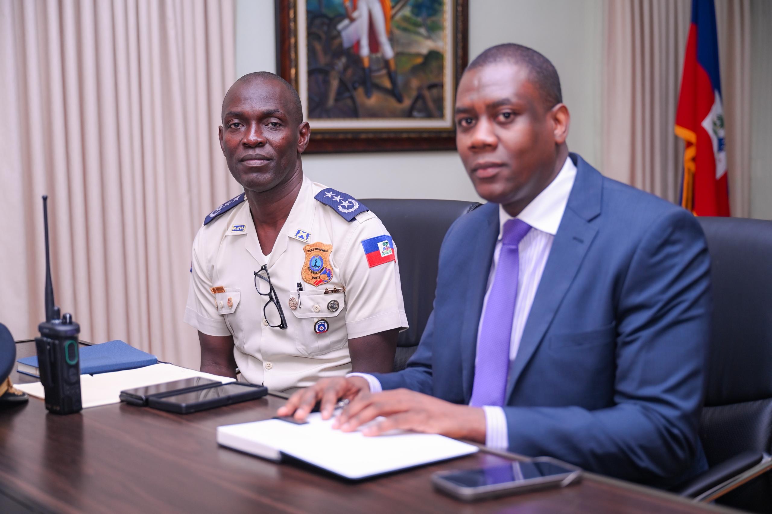 Port-au-prince, le 11 août 2025.- Ce lundi, le Chef du gouvernement, Alix Didier Fils-Aimé, a présidé, à la Primature, sa première réunion avec le Conseil Supérieur de la Police Nationale d’Haïti (CSPN), en compagnie du nouveau Directeur Général par intérim de la PNH, André Jonas Vladimir Paraison, entré en fonction le 8 août dernier.